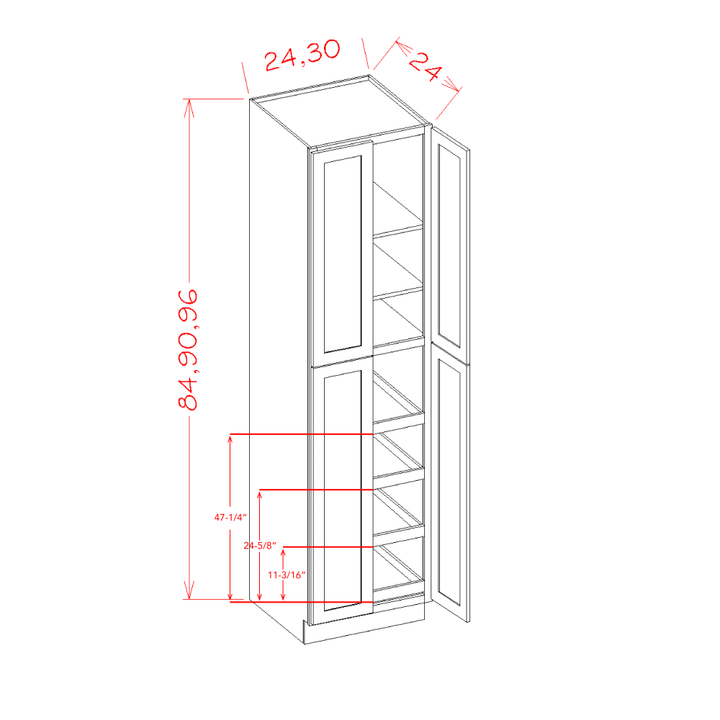 30"W x 84"H x 24"D